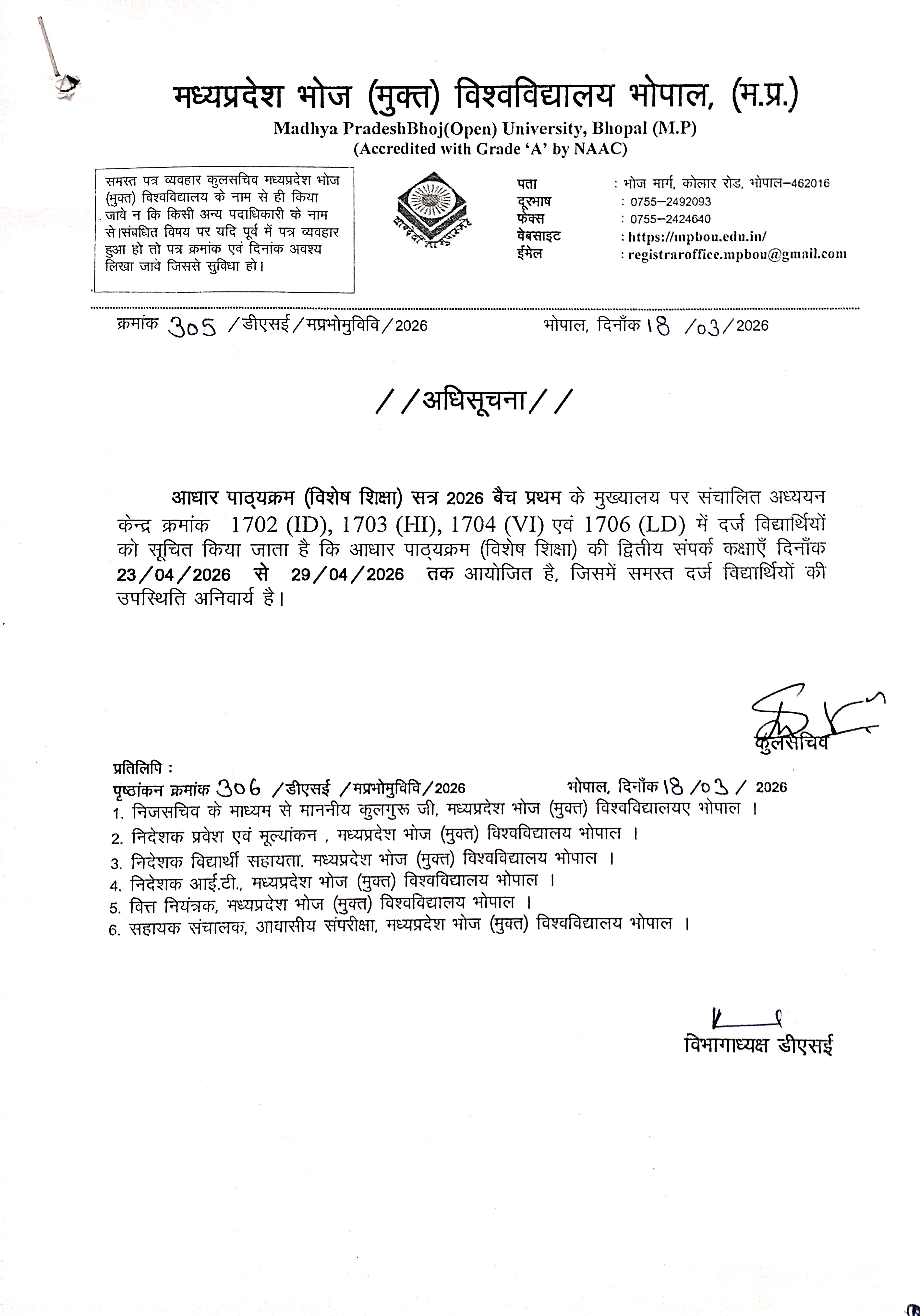 Regarding B.Ed(Special Education) Contact Classes session 2024-27